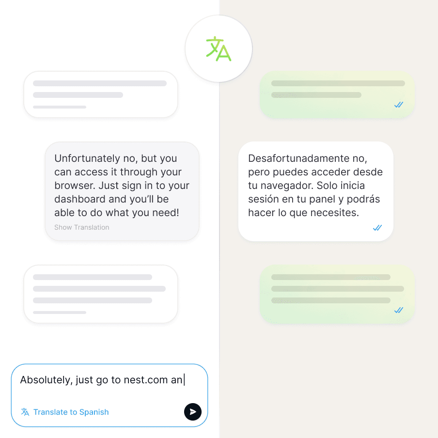 Serve customers in any language without barriers. Messages are automatically translated in both directions—you write in your language, they read in theirs. No more copy-pasting into Google Translate or losing customers who don't speak your language.