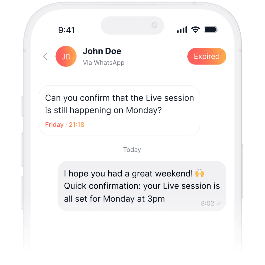 Customer asks an important question Friday afternoon? Too bad by Monday, WhatsApp closed the service window. What? Most platforms shrug and say 'that's just how it works.' Not us. Polser lets you contact customers anytime you need to, on your terms.